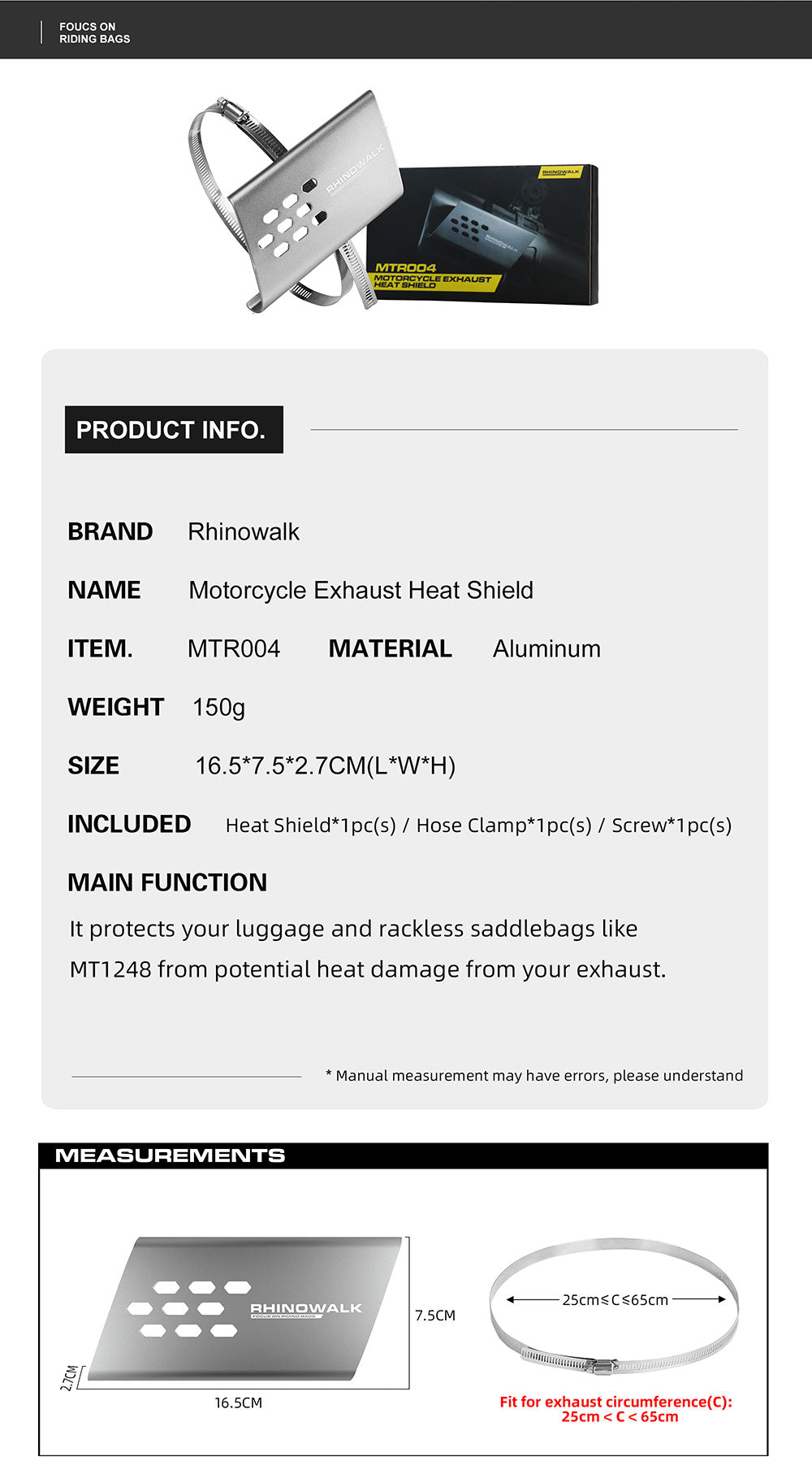 An Exhaust Heat Shield is also recommended for extra protection.