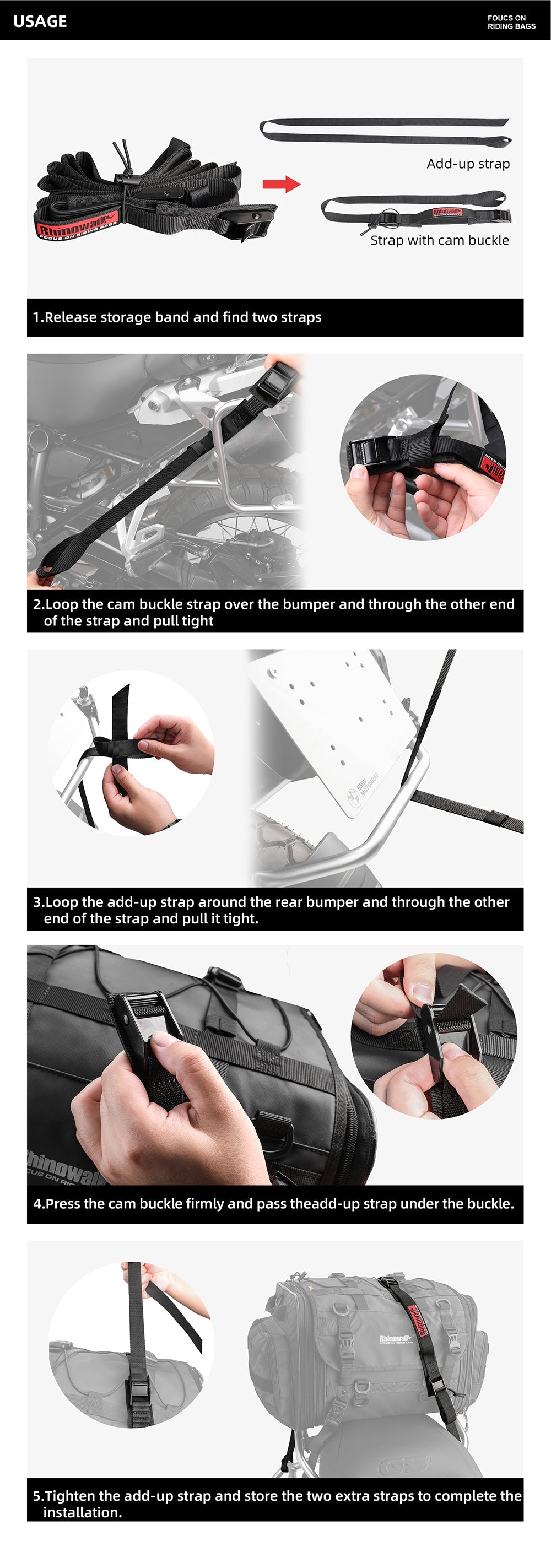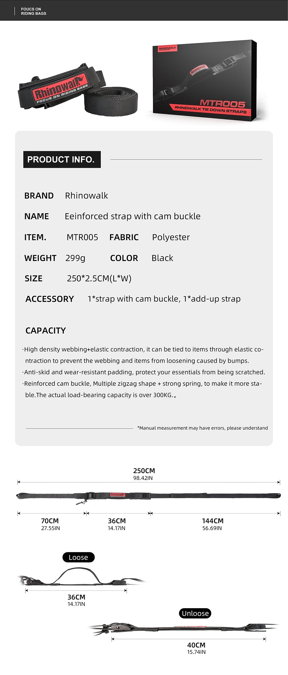 2.5M Buckle Tie-Down Strap with Cam Buckle for Motorcycle Bags
