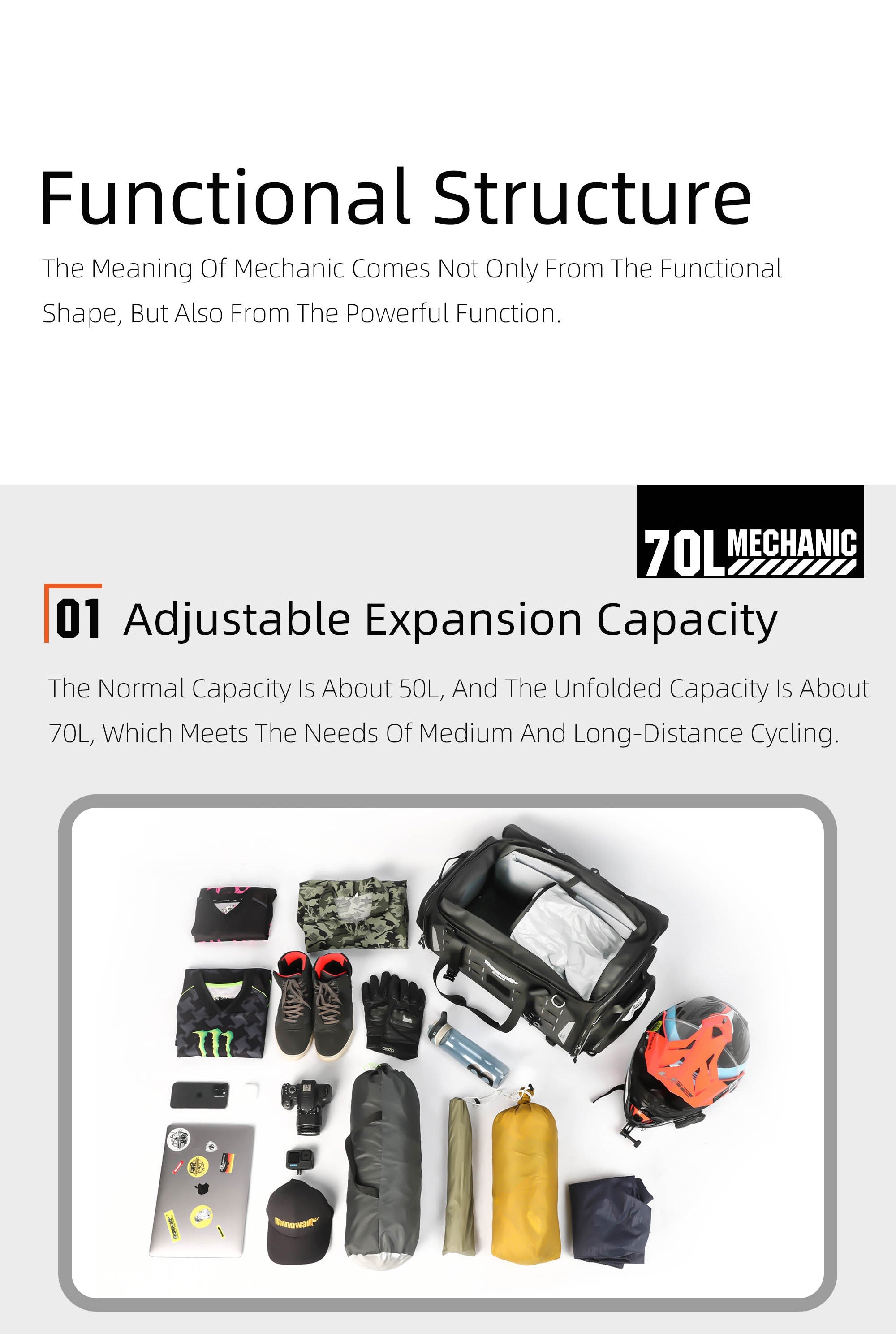 50–70L Motorcycle Tail Bag – Waterproof Touring Seat Bag