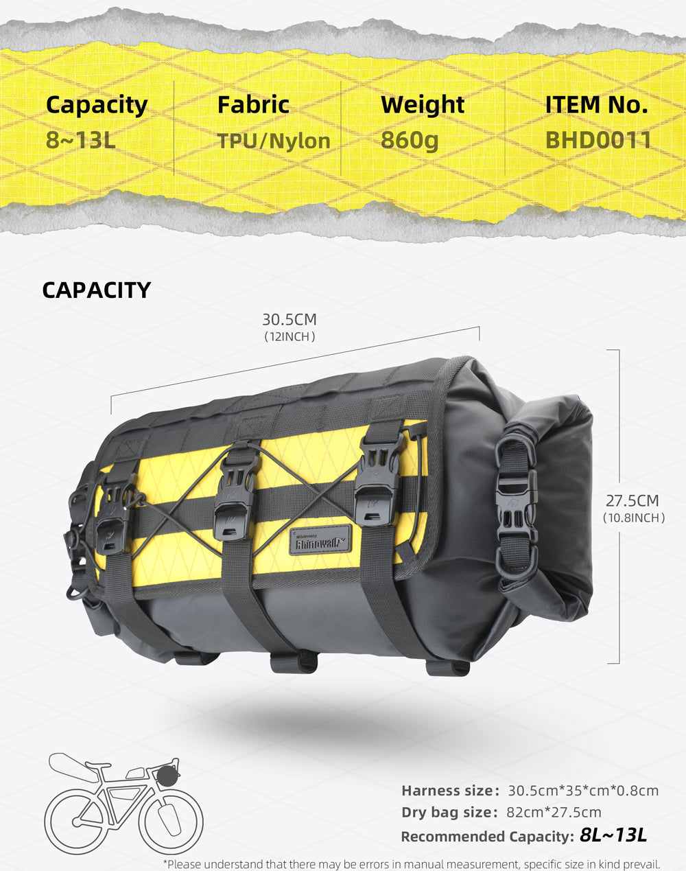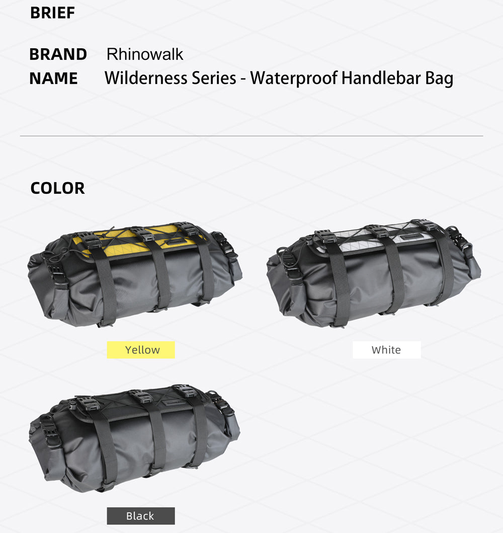 Product form product-banner Rhinowalk Official Store 8l Handlebar Bag - Wilderness Series Share WhatsApp Deel X Pin it Messenger Email ColorBlack & Yellow SKU: BHD0011YE $49.81 94 in stock Quantity Add to cart This item is a recurring or deferred purchase. By continuing, I agree to the cancellation policy and authorize you to charge my payment method at the prices, frequency and dates listed on this page until my order is fulfilled or I cancel, if permitted. Guaranteed secure & safe checkout. Shipped today? Order within: Dec 10, 2025 17:00:00 +0800 Fast shipping1 Year Warranty