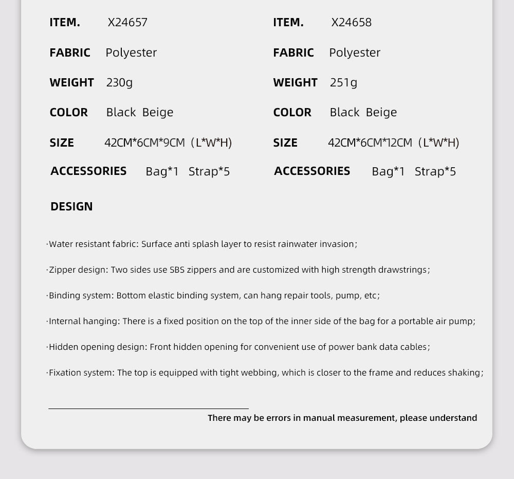 Product form product-banner Rhinowalk Official Store Bicycle Frame Bag - 2.1l, 2.7l Share WhatsApp Deel X Pin it Messenger Email -10% off all products with the code Happy Xmas Color2.1l - Black SKU: X24657BK $18.79 85 in stock Quantity Add to cart This item is a recurring or deferred purchase. By continuing, I agree to the cancellation policy and authorize you to charge my payment method at the prices, frequency and dates listed on this page until my order is fulfilled or I cancel, if permitted. Guaranteed secure & safe checkout. Fast shipping1 Year Warranty