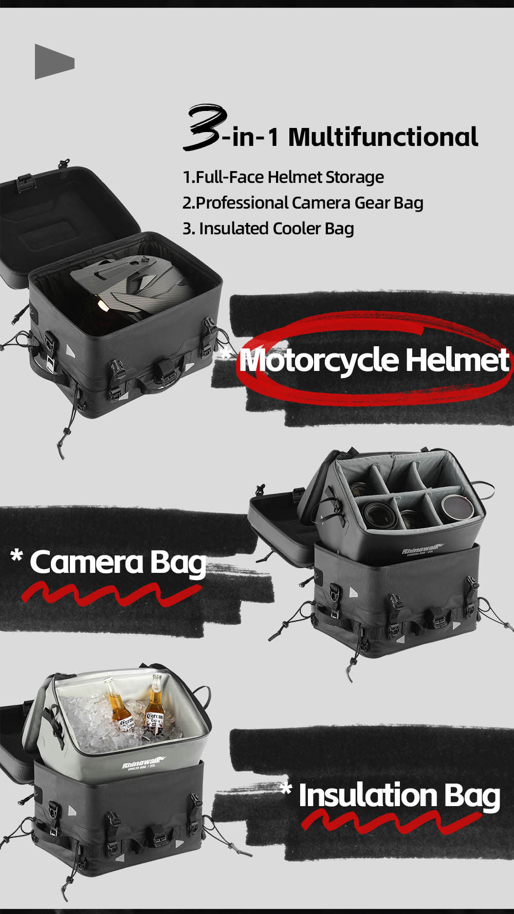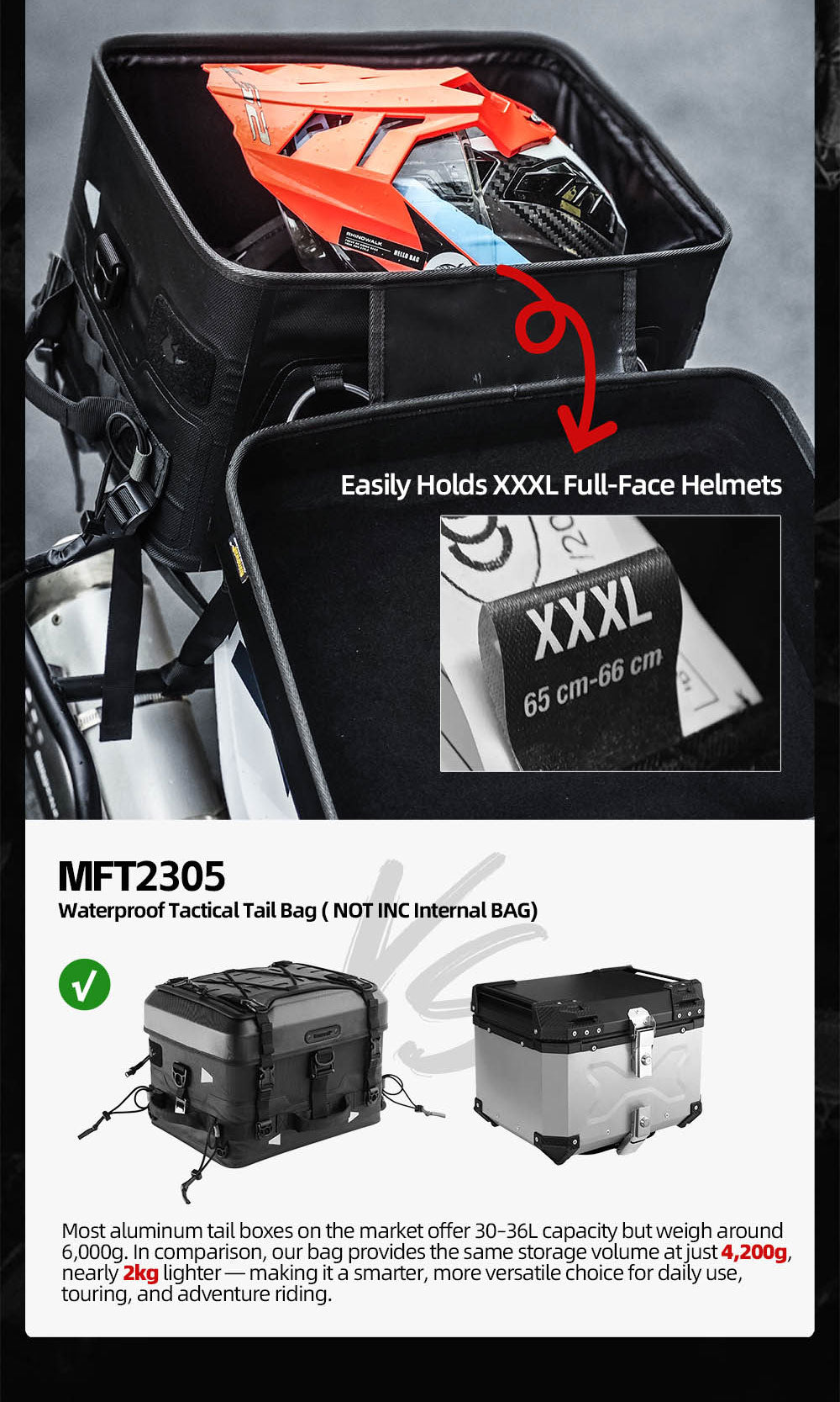 Product form product-banner Rhinowalk Official Store Fortress Series X Tactical Tail Bag Share WhatsApp Deel X Pin it Messenger Email -10% off all products with the code Happy 2026 Version Luggage Set A: Camera Version Tactical Tail Bag Luggage Set B: Cooler Version Tactical Tail Bag Luggage Set C: Regular Tactical Tail Bag Single Item A: 22L Internal Cooler Bag Single Item B: 22L Internal Camera Bag Single Item C: 36L Waterproof Tactical Tail Bag Single Item D: 35L Duffel Bag SKU: MFT2301BK $257.59 96 in stock Quantity Add to cart This item is a recurring or deferred purchase. By continuing, I agree to the cancellation policy and authorize you to charge my payment method at the prices, frequency and dates listed on this page until my order is fulfilled or I cancel, if permitted. Guaranteed secure & safe checkout. Fast shipping1 Year Warranty