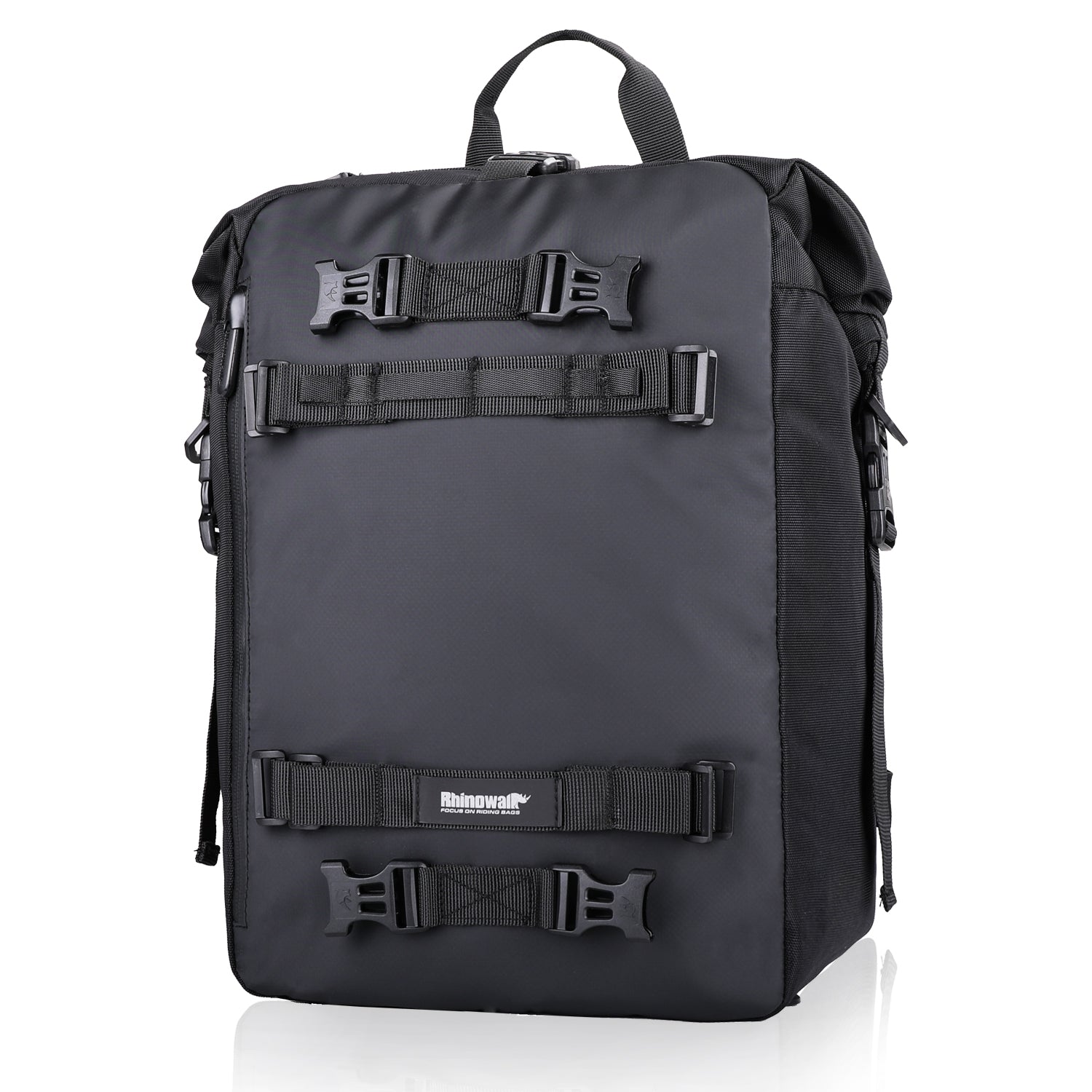 Waterproof zipper cap prevent rain intrusion; hook on loops can connect to other bag; brand buckles are solid and durable; webbing can hang objects; silver reflective logo makes it safer to ride at night.