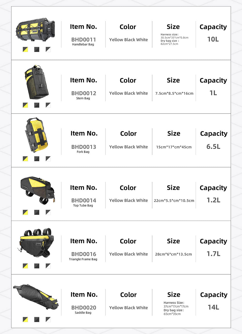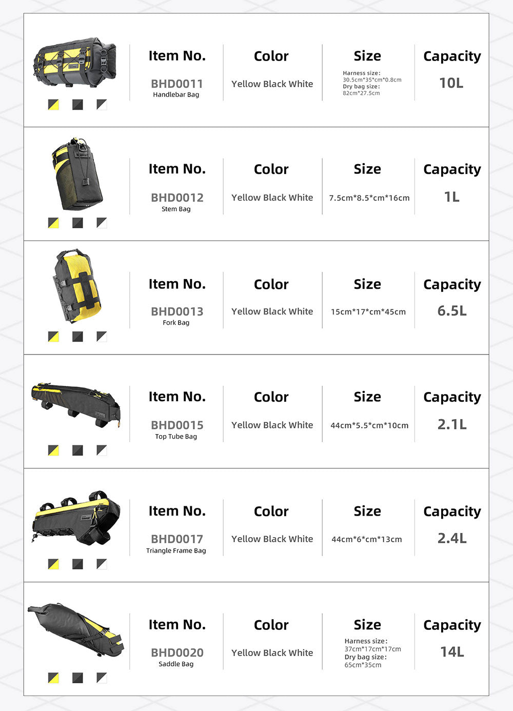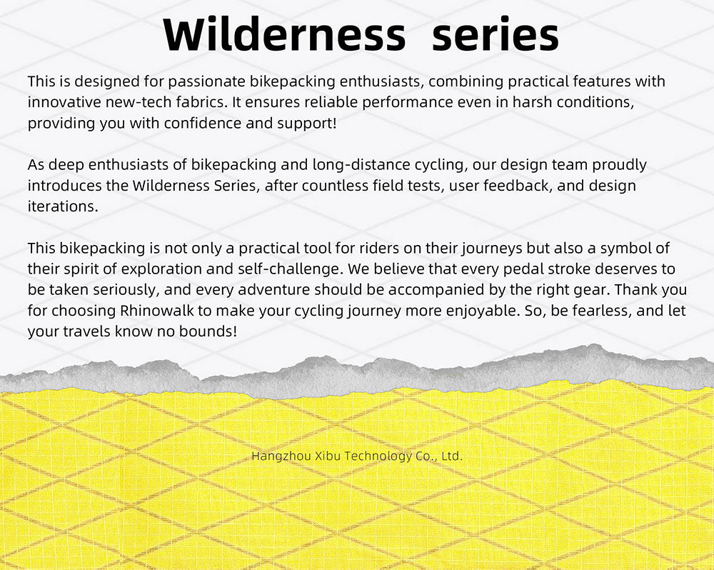 Product form product-banner Rhinowalk Official Store Wilderness Sereis Bikepacking Share WhatsApp Deel X Pin it Messenger Email ColorProposal A -Black SKU: HD-S-BK $253.79 100 in stock Quantity Add to cart This item is a recurring or deferred purchase. By continuing, I agree to the cancellation policy and authorize you to charge my payment method at the prices, frequency and dates listed on this page until my order is fulfilled or I cancel, if permitted. Guaranteed secure & safe checkout. Shipped today? Order within: Dec 10, 2025 17:00:00 +0800 Fast shipping1 Year Warranty